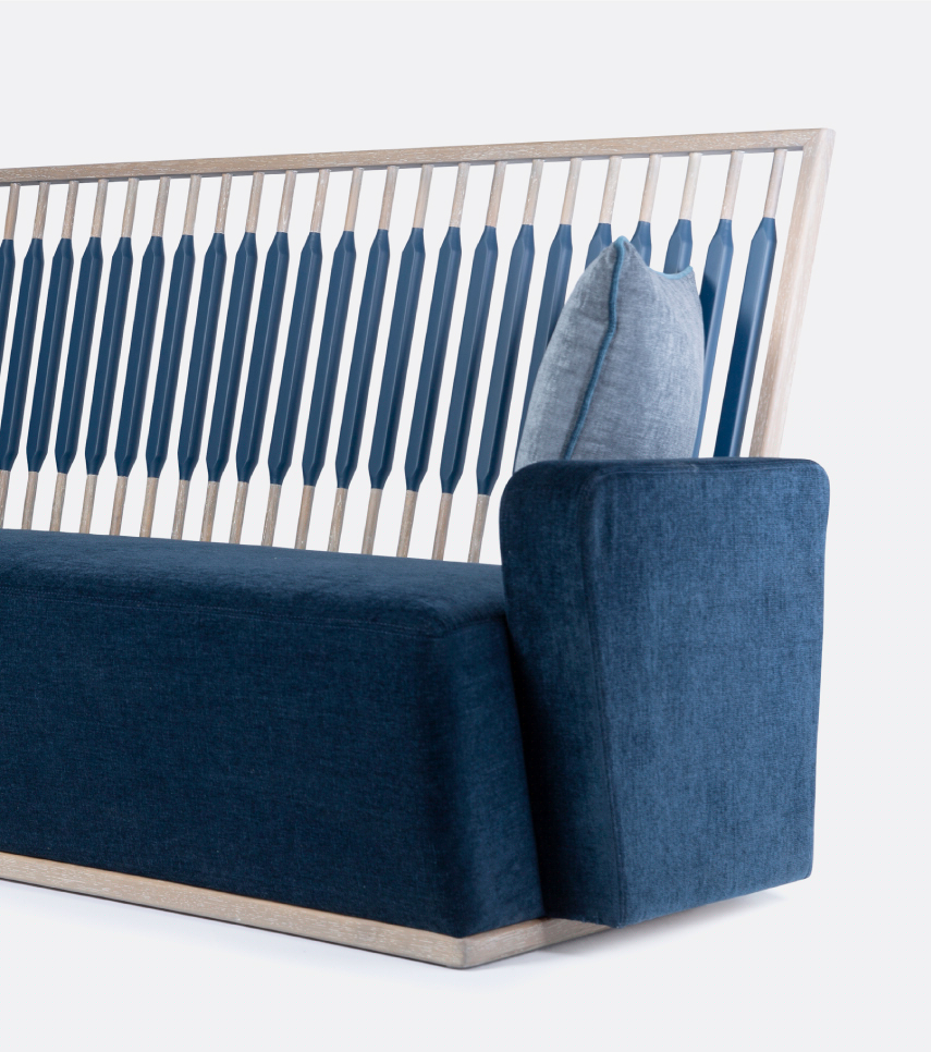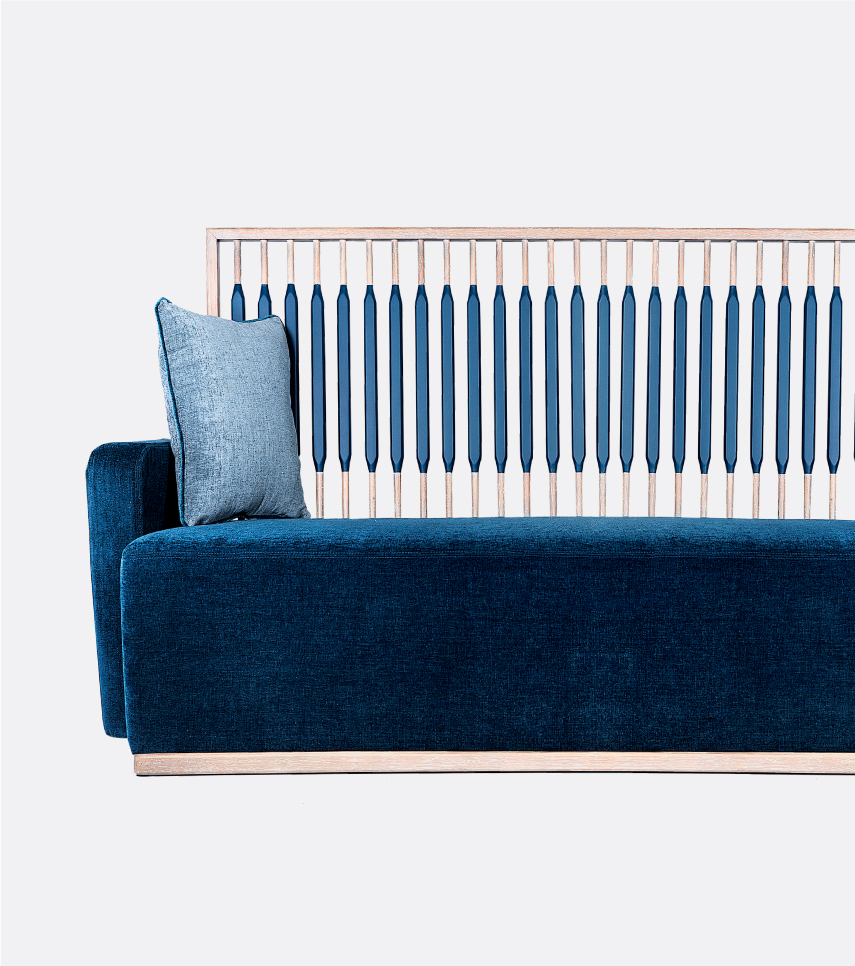 Fierce, fresh and freethinking of sensational craft. Explore the space in style with a naturally inspired colour palette of ocean blue and oak wood. Exotic fabric and wooden motives offer a direct link to a vintage musical instrument named Spinet.