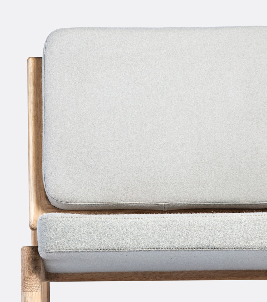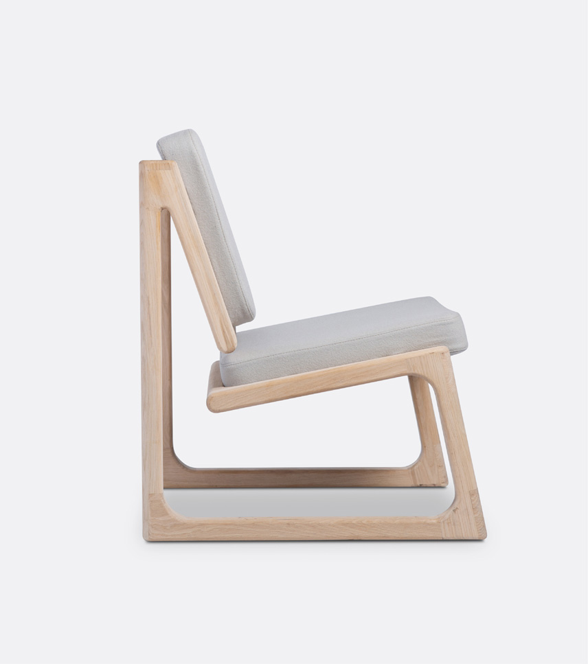Tafa, This concept is originated from Arabic language which means the ‘Float’. The chair is designed to install a sense of fascination and ambiguity as users take a closer look at what seems to be a continuous strand of bent solid oak. The chair’s main focal point is its “floating” seat pan. In order to achieve such a cantilever, the frame’s joints have been carefully designed, manufactured and tested to handle repeated use. Ergonomics and comfort are some of the main driving forces directing the form. The decision to design a lounge chair was intentional in order to carry its laid back concept through to its use.
